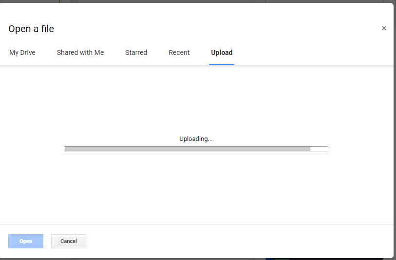 Next, click on "File" and select "Open". You'll see the window below, click on "Upload".
