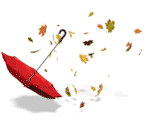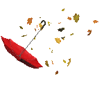 This fall leaves autumn animation shows an umbrella blowing away as leaves twirl and blow around it.