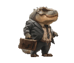 This captivating animation features a business dinosaur, a whimsical character that blends the ferocity of a T-Rex with the sophistication of a corporate professional. Dressed in a sharp suit and tie, this animated character carries a briefcase, symbolizing the fusion of business and creativity. The scene may imply themes of innovation and adaptability, showcasing how traditional business concepts can be reimagined through a playful lens. This unique character can add a fun twist to any presentation, making it memorable and engaging.