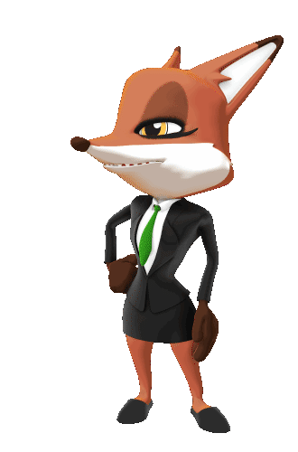 business fox female emote surprise start startle shock react reaction fear emotion corporate