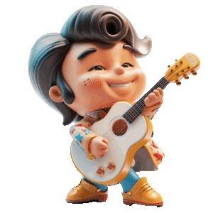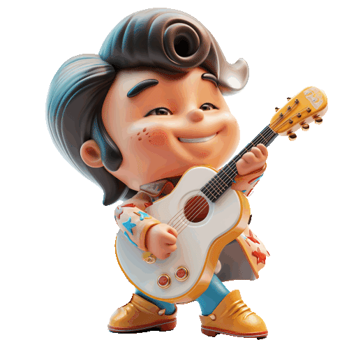 Imagine a lively cartoon version of Elvis Presley, complete with a contagious grin, passionately playing a white guitar. The animation captures the essence of the legendary musician, rocking back and forth in a burst of musical energy.