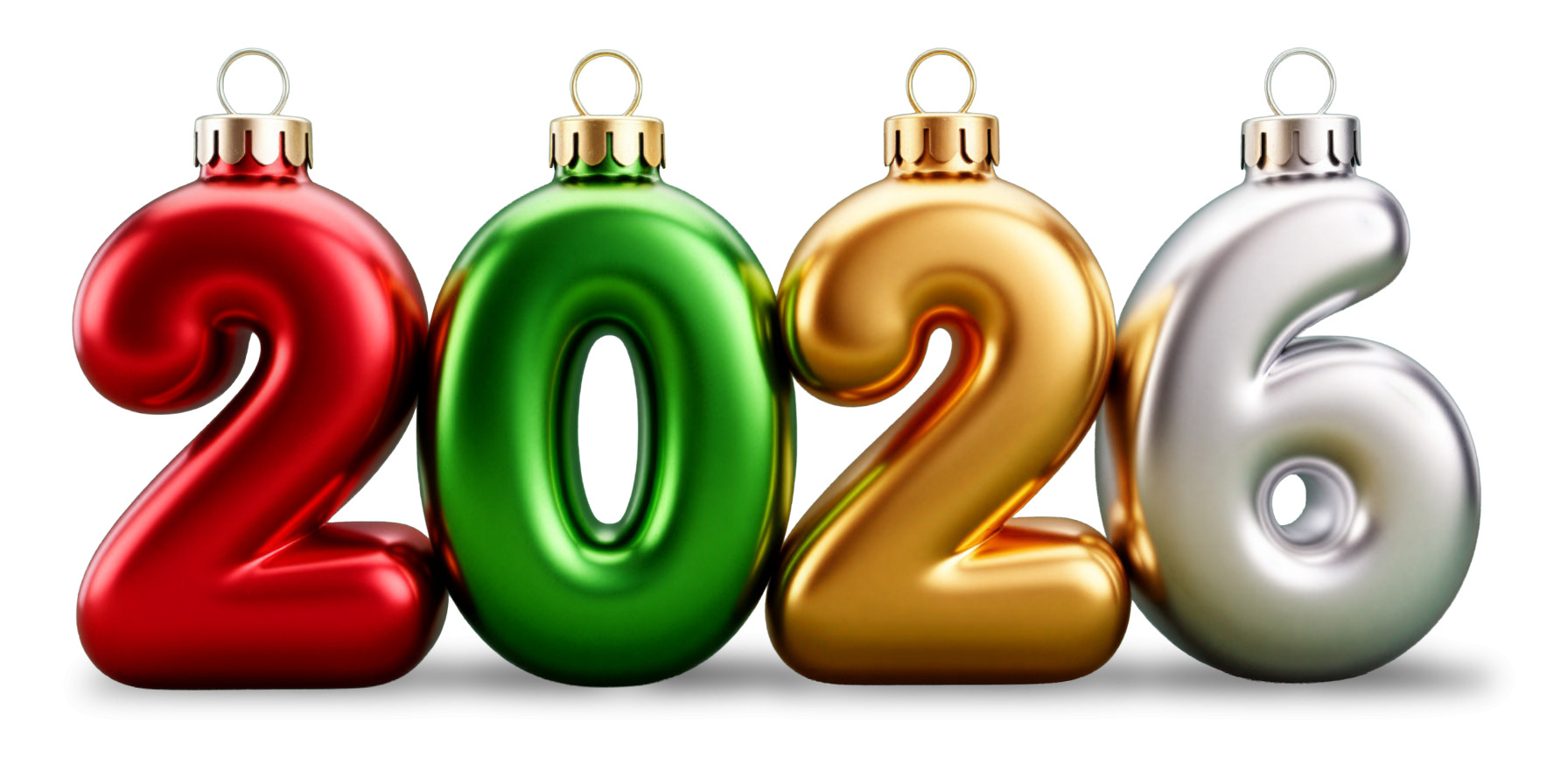 This vibrant clipart showcases festive ornaments shaped like the numbers “2026”, each decorated in cheerful holiday colors including red, green, gold, and silver. The glossy finish and ornament-style design make this image perfect for celebrating the New Year while still embracing the warmth and excitement of the holiday season. These 2026 ornaments add instant festive charm to any presentation, announcement, or seasonal project, helping you set a joyful tone for end-of-year celebrations.