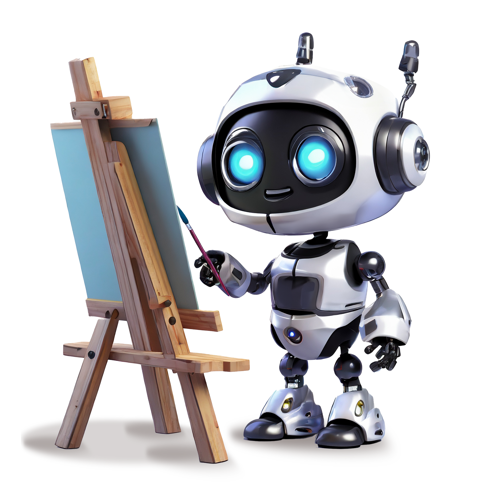 In this delightful clipart PNG image, a cute 3D robot takes on the role of an artist, standing in front of an easel and passionately painting a picture. The robot's charming design and vibrant colors add a whimsical touch to the scene, making it an engaging and creative visual element. With a transparent background, this clipart seamlessly integrates into various digital projects, offering a playful and futuristic representation of the intersection between technology and art.