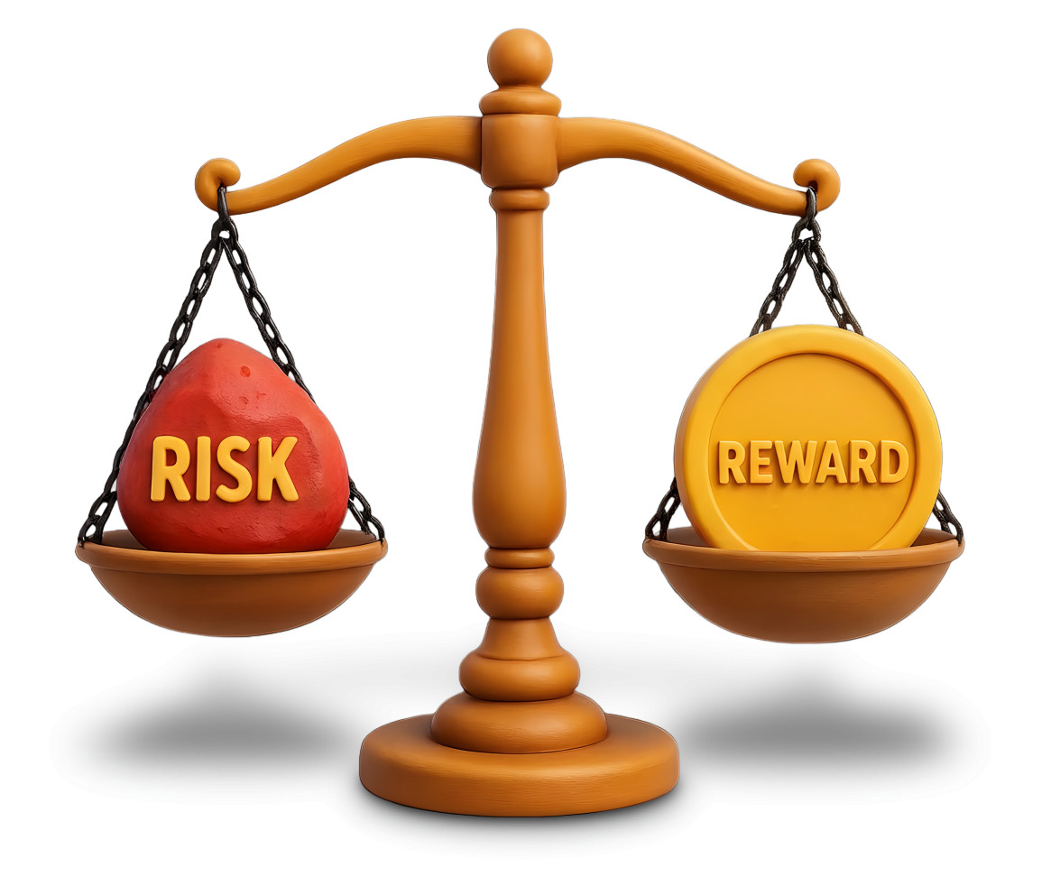 balanced, risk, reward, decision, scale, finance, strategy, planning, metaphor, concept