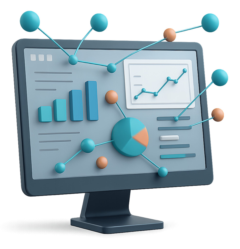 This Big Data Analysis Clipart showcases a modern computer screen displaying various data visualizations, including bar graphs, pie charts, and connected data points. The design emphasizes the complexity and interconnectedness of data, making it ideal for presentations focused on analytics, technology, and data-driven decision-making. The vibrant colors and 3D elements enhance the visual appeal, capturing the essence of big data analysis.