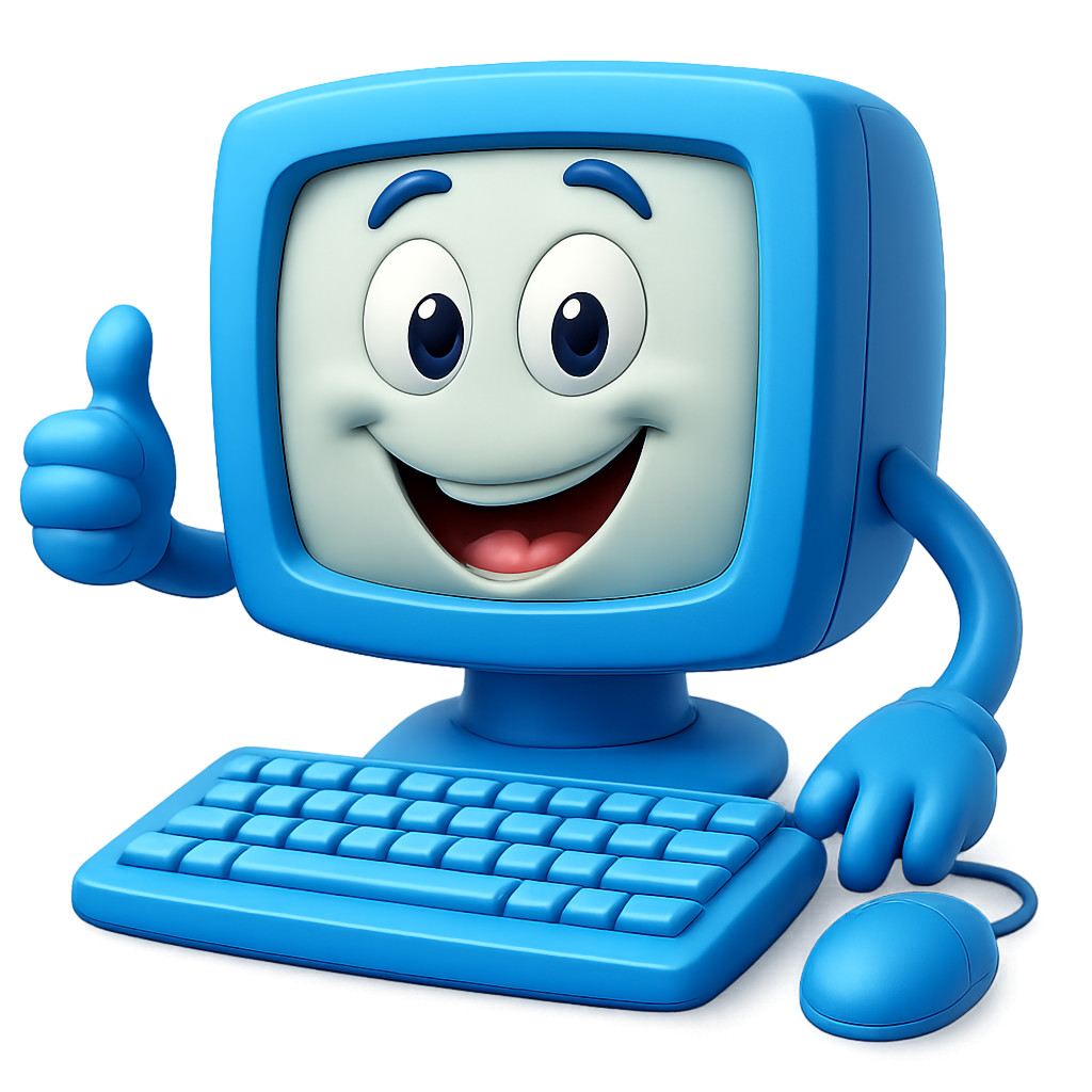 This adorable blue computer cartoon clipart is perfect for adding a fun and engaging element to your tech-themed presentations. With its cheerful expression and friendly demeanor, this character can help make complex topics more accessible and enjoyable for young audiences. Ideal for educational materials, this clipart can easily capture attention and stimulate interest in technology.