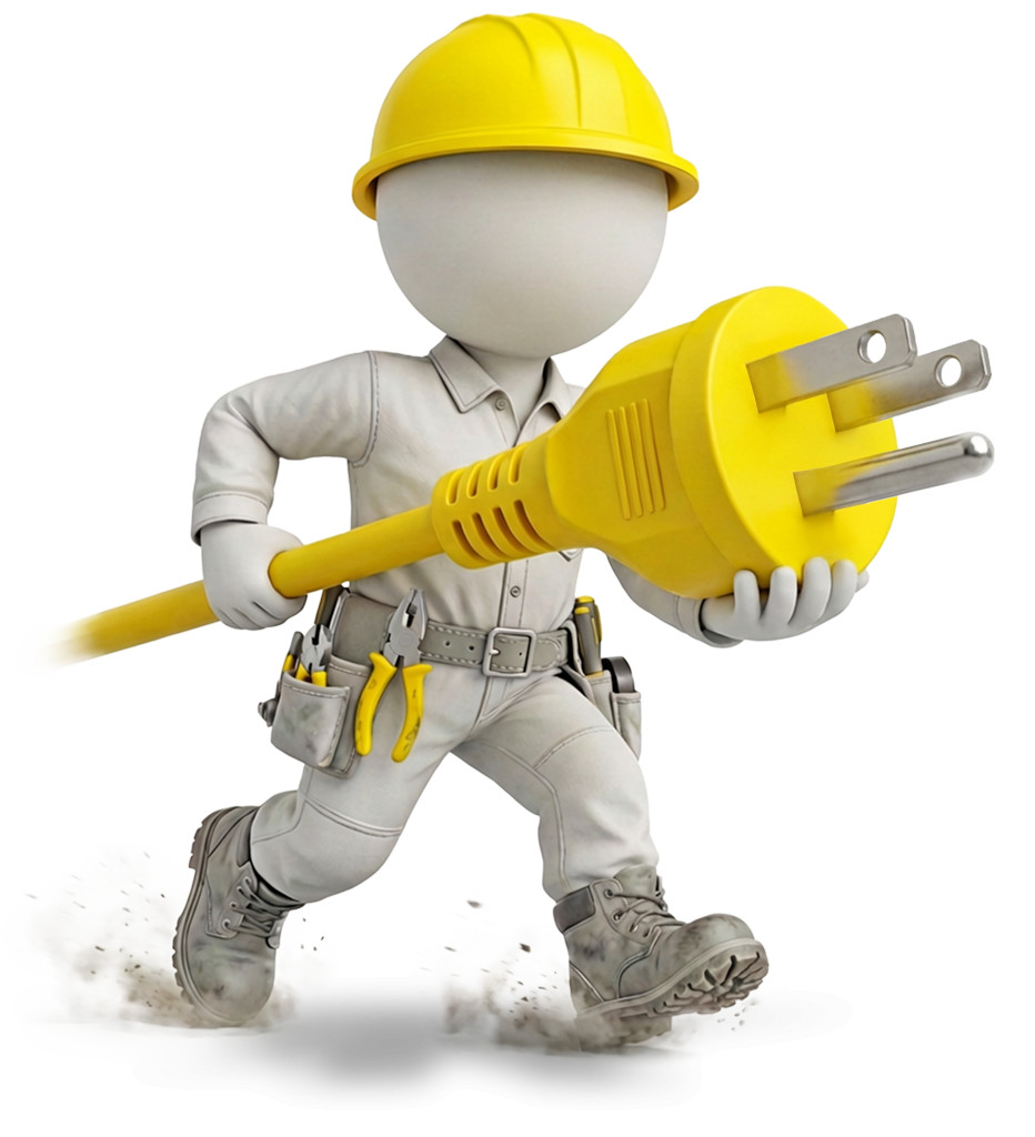 This dynamic clipart features a dedicated electrician in a hard hat, energetically carrying a bright yellow power cord. The character, dressed in work attire, symbolizes the essential role of electricians in ensuring safe and reliable electrical connections. The visual conveys a sense of urgency and professionalism, making it perfect for presentations related to electrical work, safety, and home improvement.