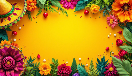 Cinco de Mayo, festive background, flowers, sombrero, yellow, vibrant colors, celebration, cultural heritage, Mexican traditions