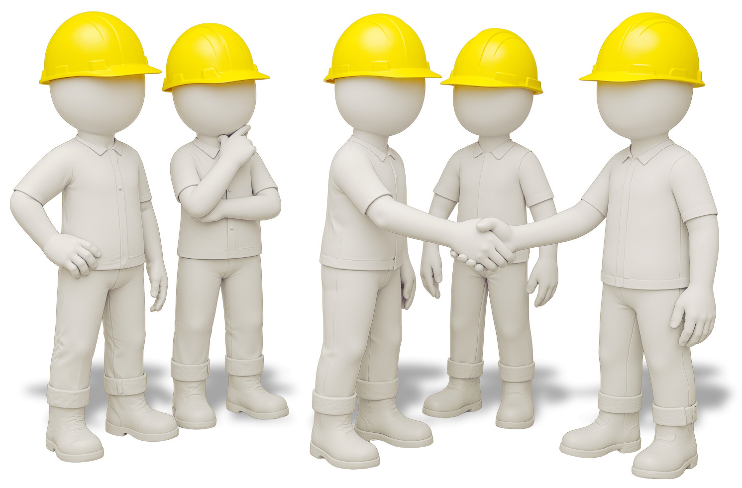 This construction crew teamwork clipart features a group of animated figures in hard hats, showcasing collaboration and communication among team members. The characters are depicted in various poses, including a handshake, which symbolizes partnership and agreement. This visual representation is perfect for conveying themes of teamwork, safety, and project collaboration in your presentations.