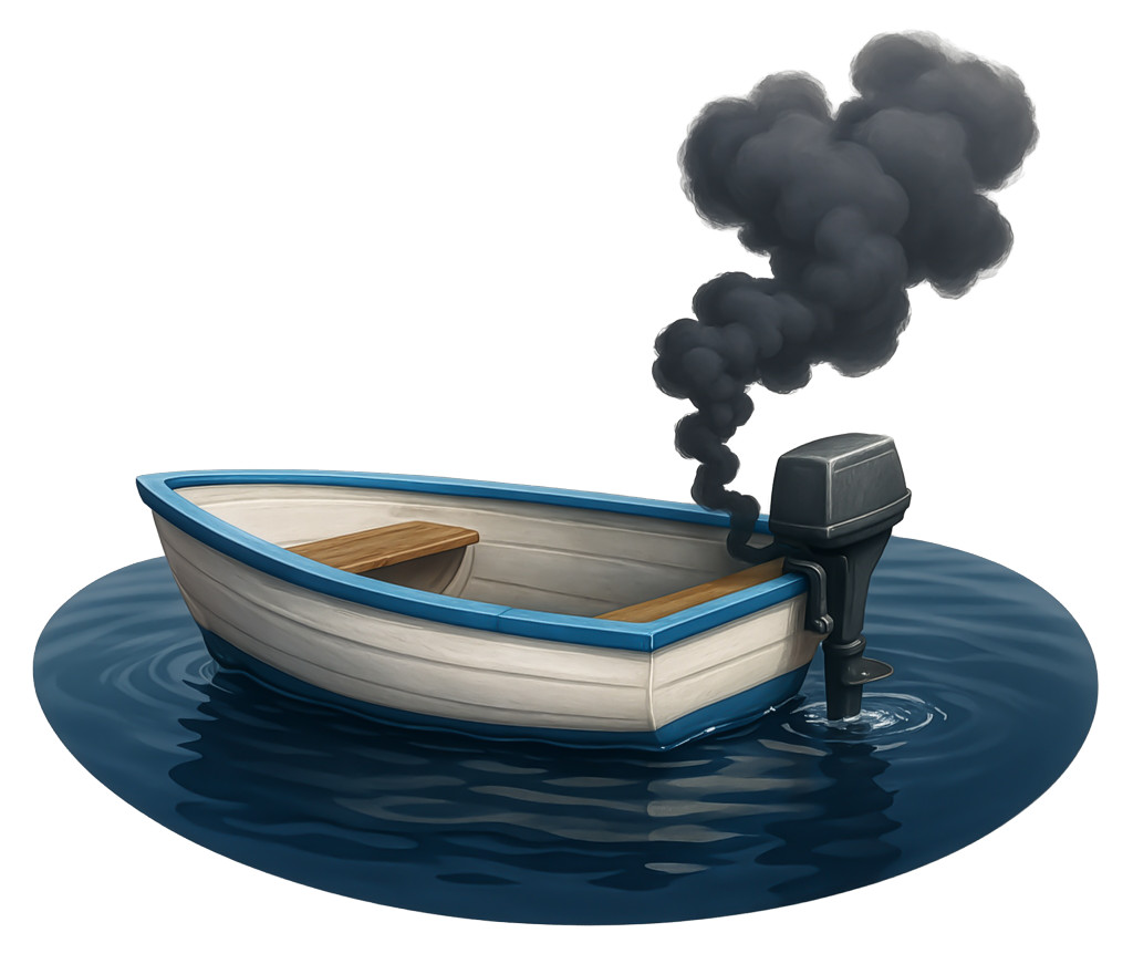 The smoky, motionless boat creates an immediate emotional connection by tapping into familiar feelings of frustration, overwhelm, or inability to move forward. This visual helps your audience quickly understand and relate to moments of stalled progress, making your message more impactful on both a personal and emotional level.
