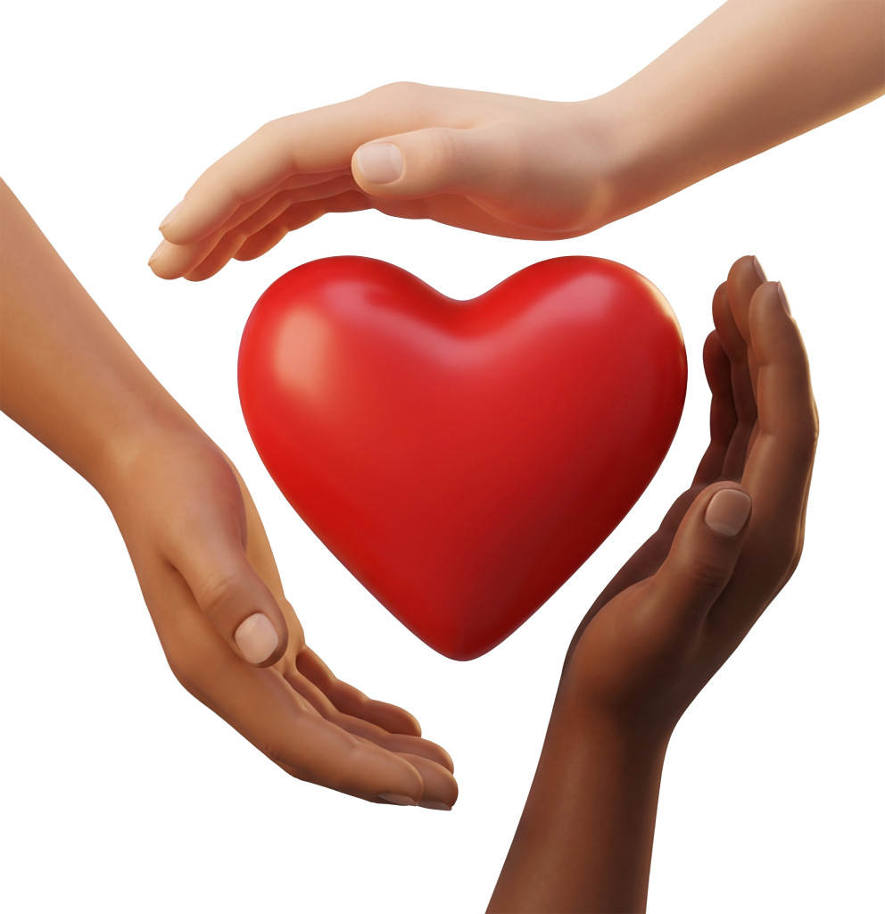 This striking image features a vibrant red heart cradled by diverse hands, representing the themes of care, compassion, and empathy. The hands, varying in skin tones, emphasize the importance of diversity and unity in fostering love and support within communities. This visual serves as a powerful reminder of the collective strength found in compassion and understanding among different backgrounds.