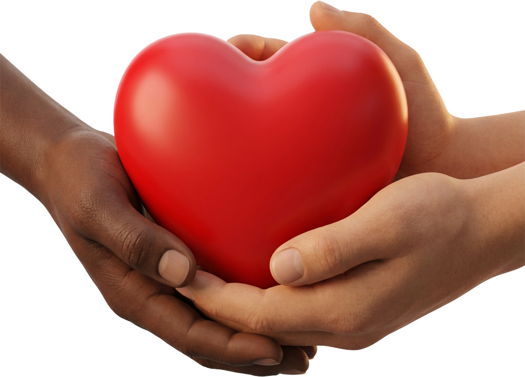 This image beautifully captures the essence of diversity and compassion through the portrayal of two hands, one dark and one light, gently cradling a vibrant red heart. The heart serves as a universal symbol of love and empathy, emphasizing the importance of unity and support among different cultures and backgrounds. This visual representation encourages viewers to embrace inclusivity and foster connections that transcend differences, making it a powerful image for discussions about community and understanding.