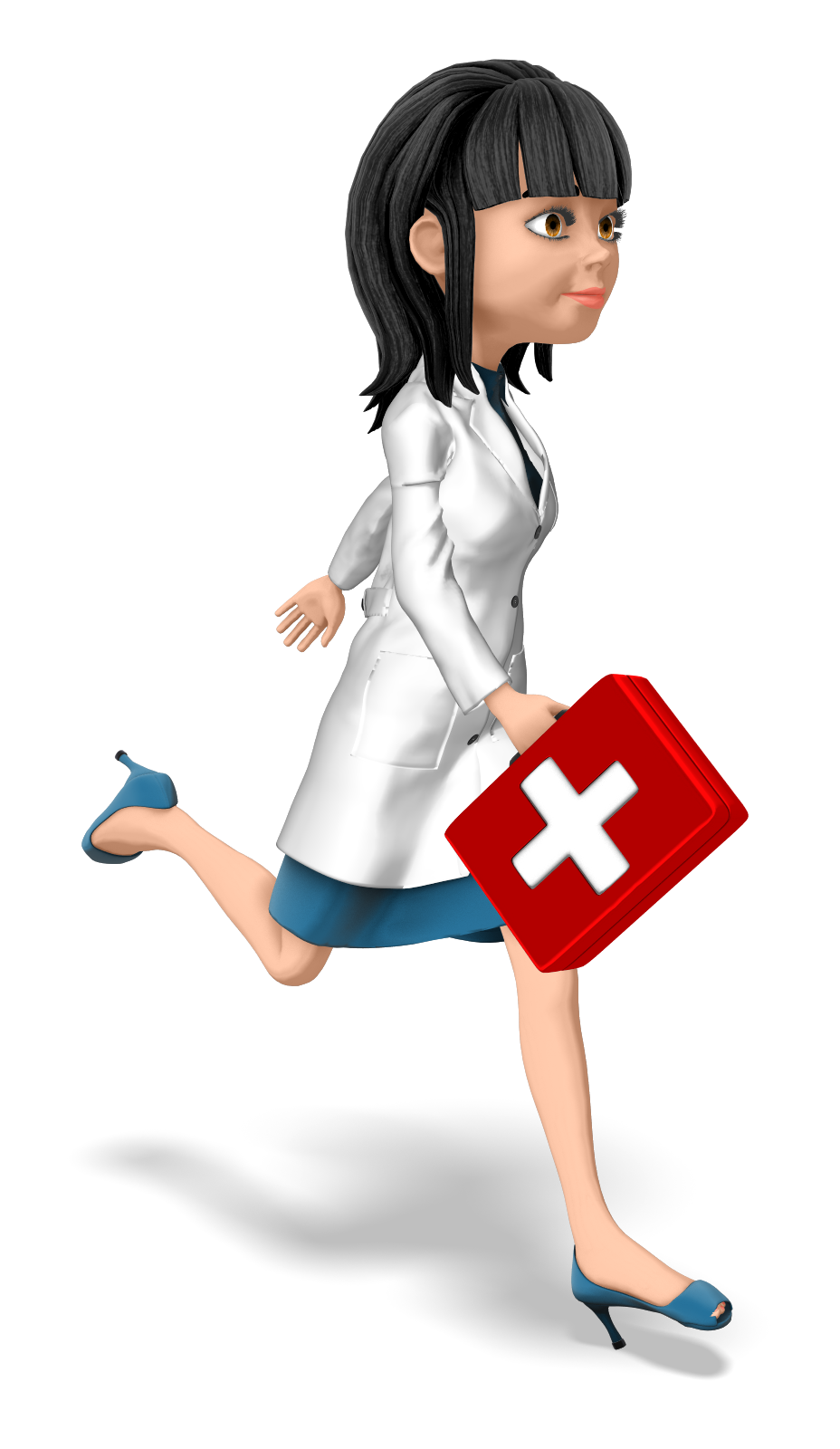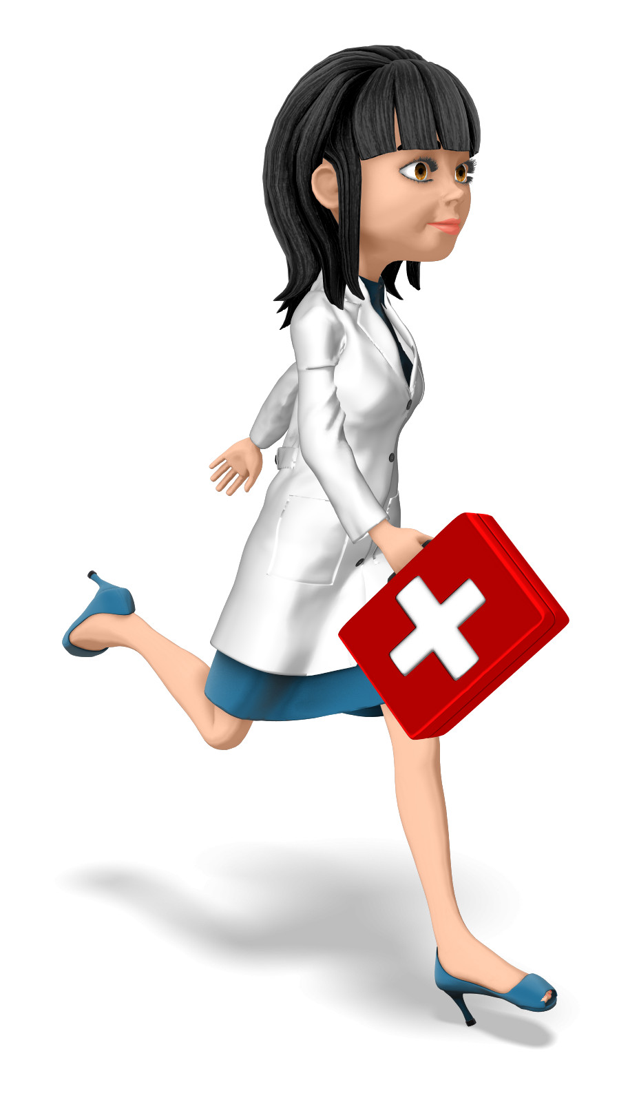 doctor kim run medkit first aid emergency health care injury help race hurry dr hospital er white coat frock female woman girl