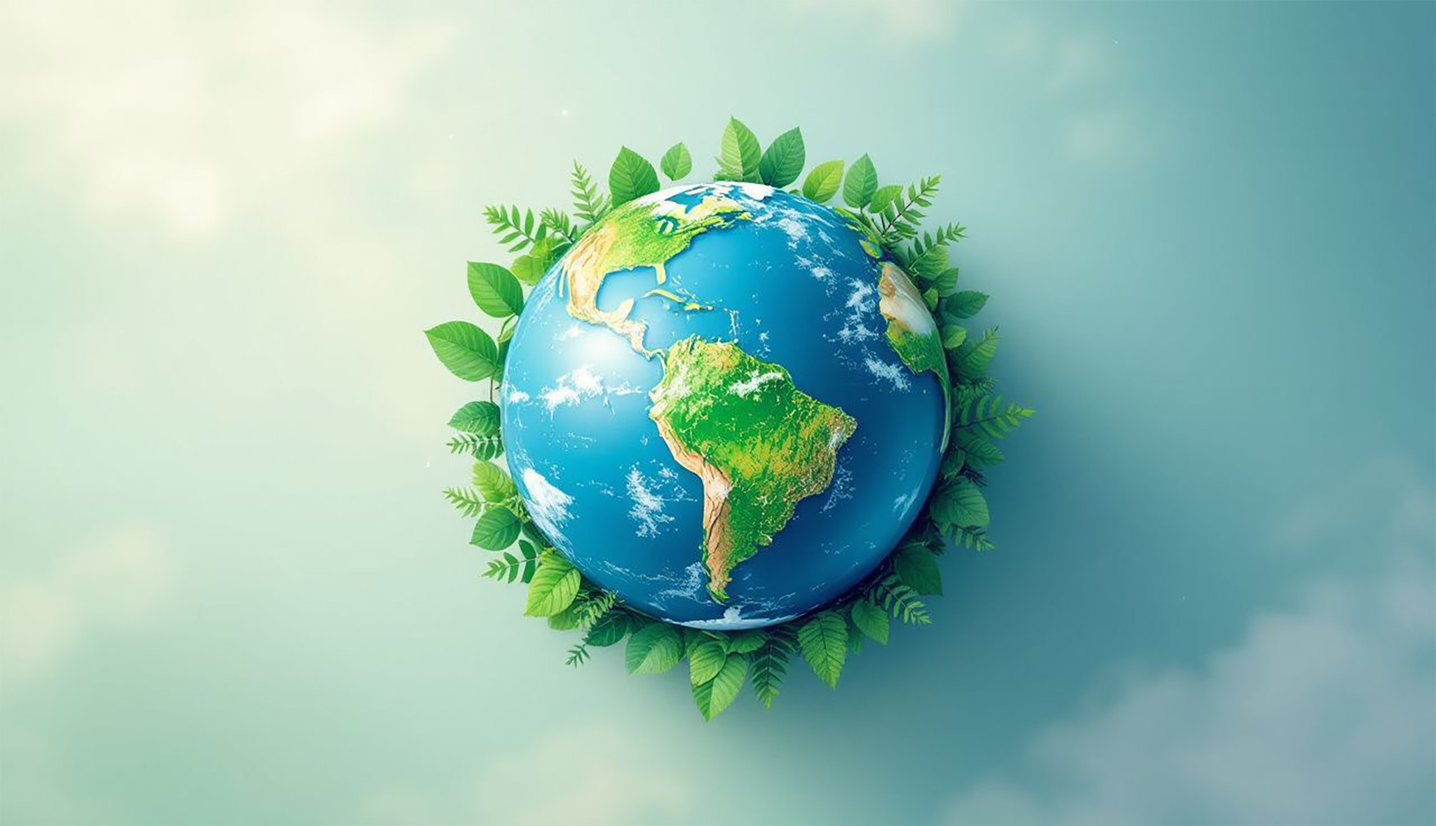 Earth Day, globe, green leaves, environmental conservation, sustainability, blue background, nature, ecology