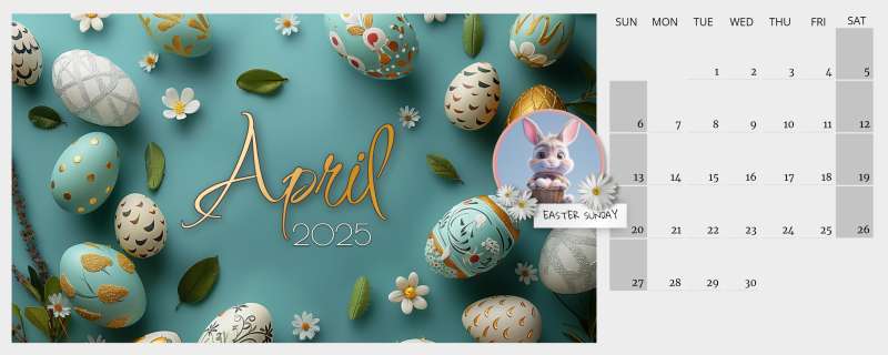 The aesthetic appeal and editable features of this calendar make it an excellent resource for various media projects and designs. Graphic designers can integrate this piece into digital artworks or print media related to the Easter theme. Its high-quality visuals ensure that it stands out, whether used online or offline.