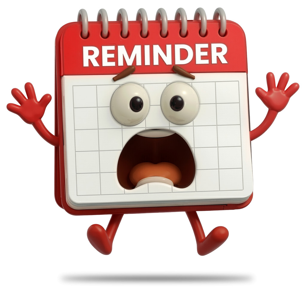 This reminder clipart helps tell a visual story by embodying the urgency and importance of keeping track of events. Its animated expression and dynamic pose make it relatable and engaging, ensuring that your audience understands the significance of timely reminders.