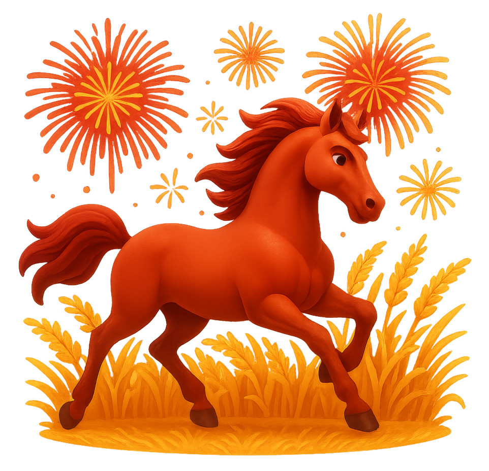 This vibrant clipart features a golden rice horse galloping amidst a backdrop of colorful fireworks, perfect for adding a touch of excitement to your presentations. The lively design captures the essence of celebration, making it ideal for themes related to New Year's Eve or festive events. The horse's dynamic pose and bright colors evoke feelings of joy and energy, ensuring your slides stand out and engage your audience.
