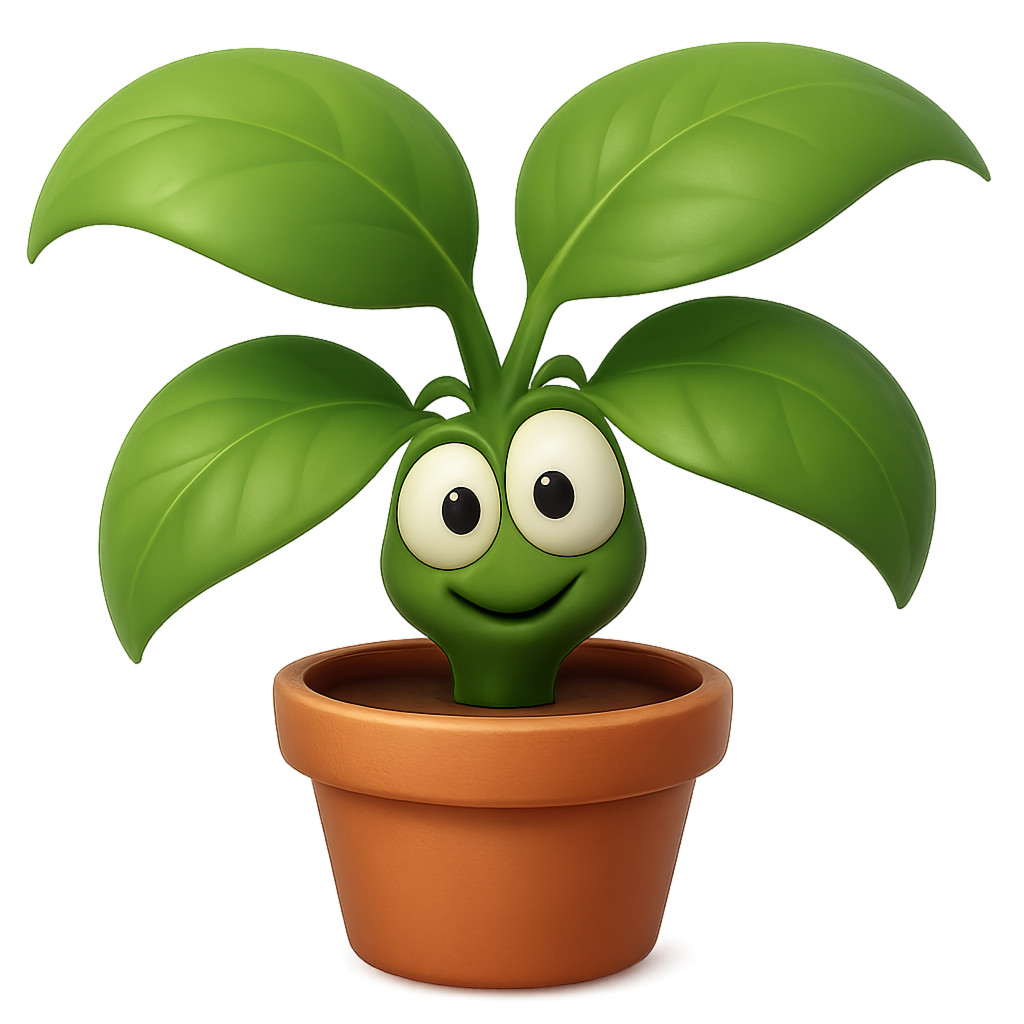 This vibrant clipart features an animated green plant character, complete with a cheerful facial expression that radiates positivity. The character is depicted with large, glossy leaves and a rounded pot, making it an ideal representation of growth and vitality. This friendly plant adds a touch of whimsy and charm, making it perfect for presentations focused on themes such as nature, gardening, or environmental awareness. Its engaging design can easily capture the attention of an audience, making it a valuable addition to any visual project.
