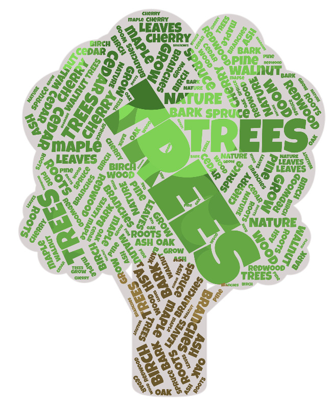 Use this green tree shape as a starting place for your own word art creation. Our free word cloud generator allows you to change words, colors, fonts, positions and more. Click the customize button to get started making your own word art.