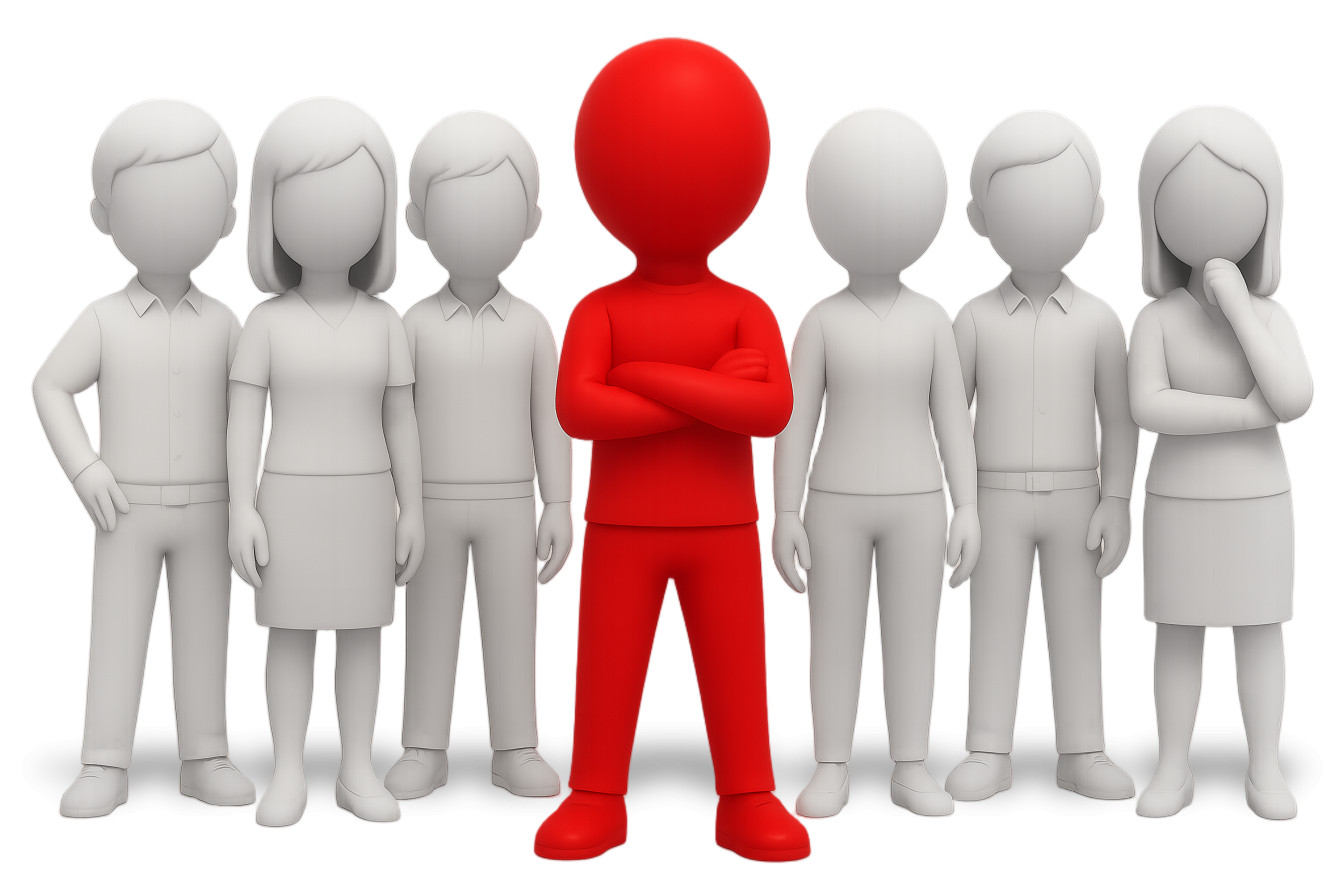 This engaging clipart features a standout character in bright red, positioned confidently at the forefront of a group of gray figures. The red figure symbolizes the leader of the pack, exuding authority and charisma, while the surrounding gray figures represent followers or team members. This visual representation effectively conveys themes of leadership, teamwork, and guidance, making it ideal for presentations focused on management, motivation, and group dynamics. The contrast between the vibrant red and the muted gray enhances the visual impact, emphasizing the importance of strong leadership in any group setting.