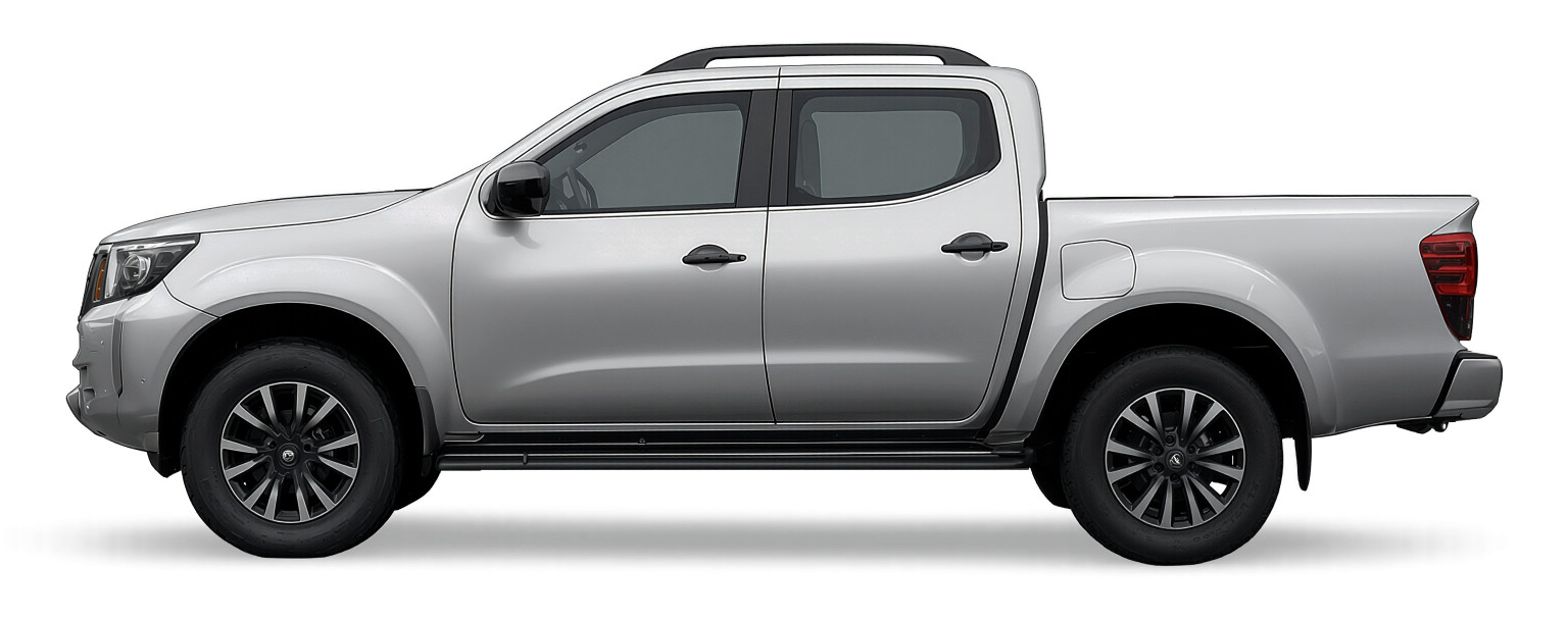 This image showcases a modern pickup truck featuring a sleek and sophisticated design. The vehicle's shiny silver exterior is complemented by stylish alloy wheels, giving it a contemporary yet robust appearance. With its spacious cabin and practical bed, this truck is perfect for both everyday use and adventurous outings, making it a versatile choice for drivers who appreciate style and functionality.