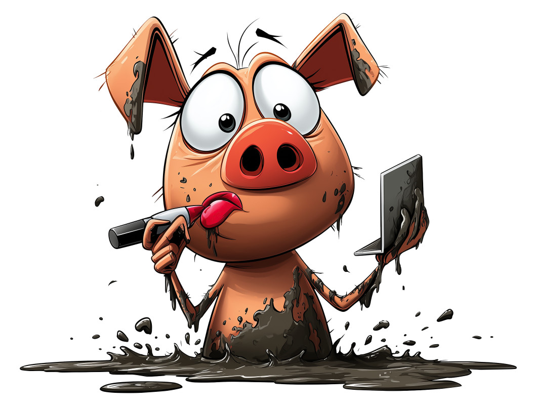 This playful clipart features a cartoon-style pig wearing lipstick, humorously embodying the idiom “putting lipstick on a pig.” The pig, splattered with mud, holds a makeup pencil in one hand and a small mirror in the other, creating a fun visual contrast between beauty and messiness. This presentation clipart is perfect for illustrating themes of superficial fixes, humor, or the futility of trying to gloss over deeper issues. Its exaggerated expressions and bright colors make it an attention-grabbing choice for presentations that want to entertain while communicating an important point.