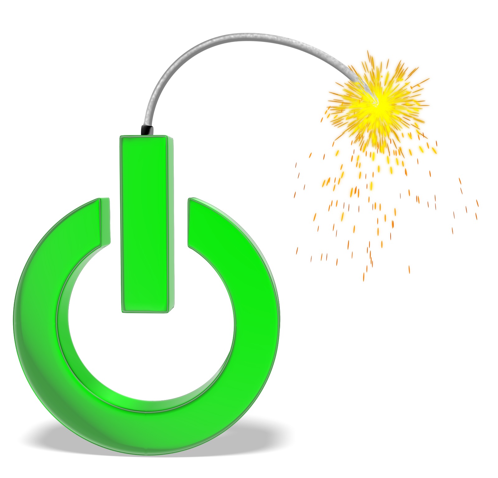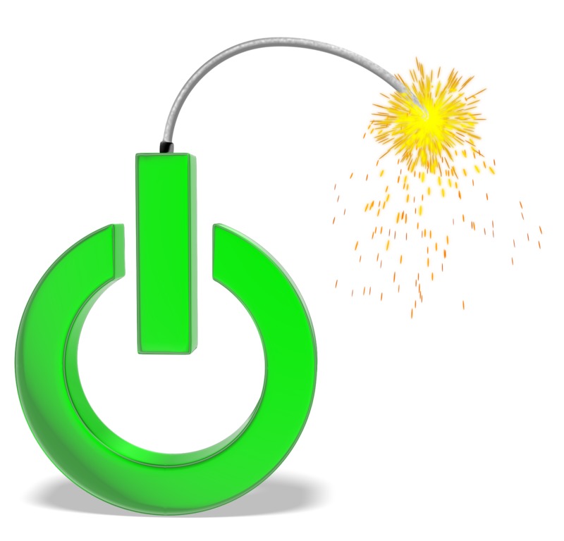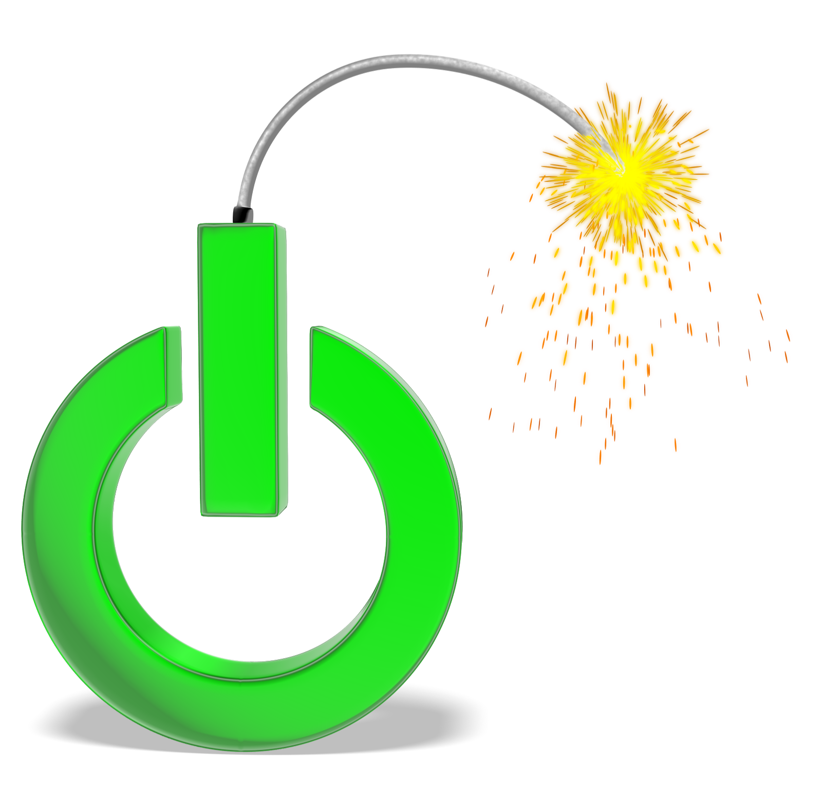 power button fuse technology bomb explode detonate problem spark ignite symbol computer electronic