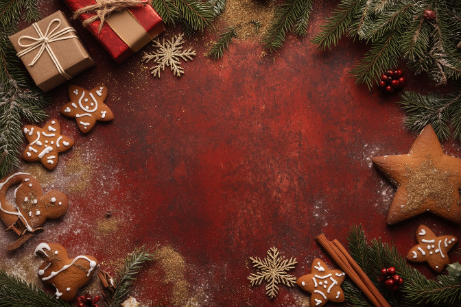 Christmas, gingerbread, rustic, festive, pine, red, holiday, cookies, decorations, cinnamon