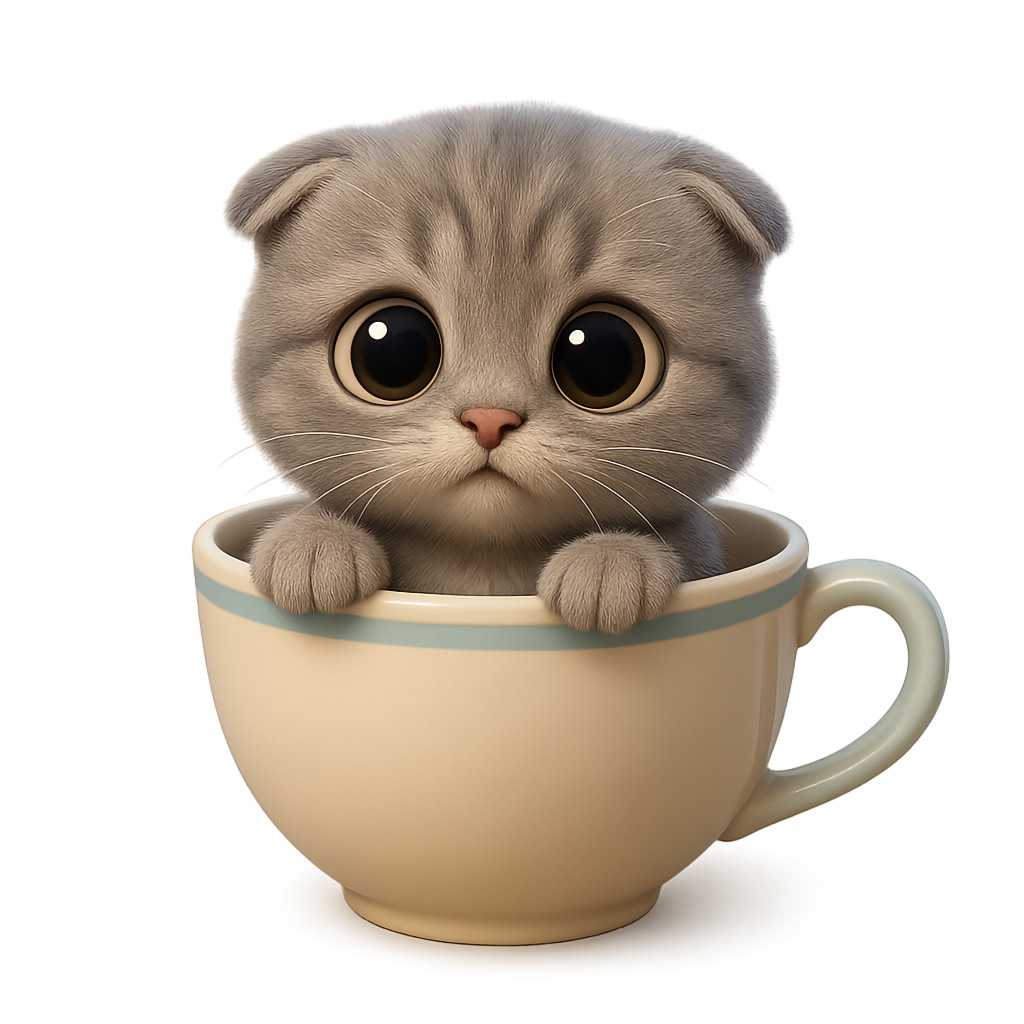 This adorable clipart features a Scottish Fold kitten peeking cutely from a teacup, showcasing its large, expressive eyes and fluffy fur. The kitten's playful demeanor and the cozy setting of the teacup create a heartwarming visual that is perfect for various presentations. This image evokes feelings of warmth and affection, making it an ideal choice for pet lovers, animal-themed projects, or any presentation that aims to bring a smile to the audience's faces.
