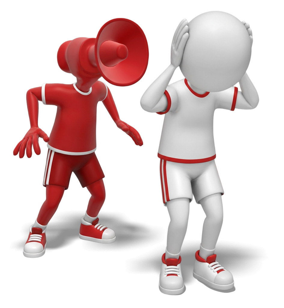 This engaging clipart features stick figure characters in a vibrant sports context, showcasing one figure with a bullhorn while the other covers their ears. The use of bold colors, particularly red and white, enhances the visual appeal, making it perfect for presentations related to sports events, team announcements, or motivational themes. The expressive poses of the figures convey a sense of action and excitement, ideal for capturing attention in any presentation.