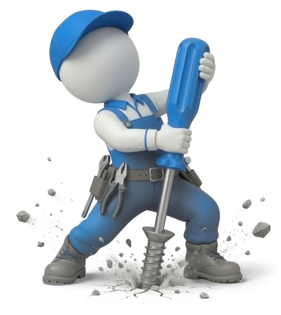 This clipart depicts a carpenter struggling with a screwdriver, showcasing the challenges faced in the construction industry. The character, dressed in blue work attire, is using a large screwdriver while standing on cracked ground, symbolizing the hard work and effort required in construction tasks. The image effectively conveys the theme of determination and the physical demands of manual labor, making it relatable to various audiences.