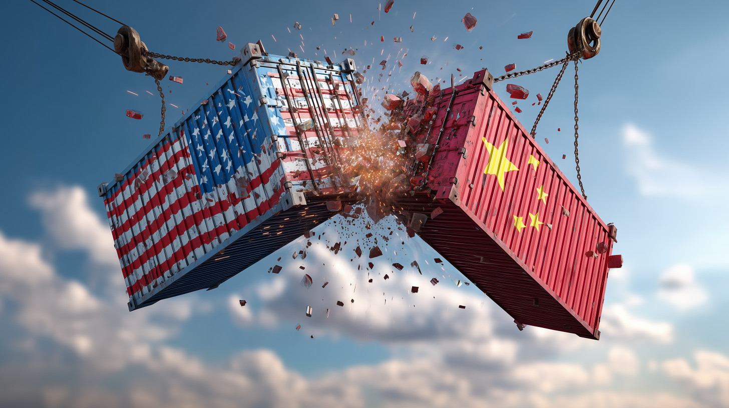 Incorporate this China vs U.S. trade war background image into one of our PowerPoint templates to reinforce your topic with striking visuals. Explore more PowerPoint backgrounds to create cohesive slide designs for presentations on economics, politics, and international business.