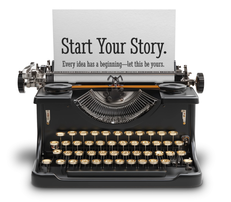 This customizable typewriter clipart features a vintage black typewriter with gold-trimmed keys and a blank piece of paper ready for your own text. It evokes a strong sense of nostalgia while offering a unique way to personalize your message—perfect for quotes, announcements, or storytelling themes.