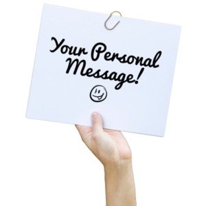 A pair of hands hold a Christmas gift with a gift tag. You may customize the message on the gift tag using our on-line tools.