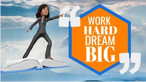 This custom design video shows a figure continuously climbing up a book stack.  You can customize this video by changing the text and adding your own images.