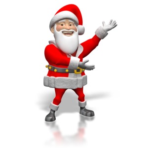 This festive clipart image features Santa Claus posed presenting to the side.  He has a large smile on his face with one hand on his waist, and the other hand extended off to his side.  Use this clipart image for all your Chistmas, holiday, or seasonal themed presentations.