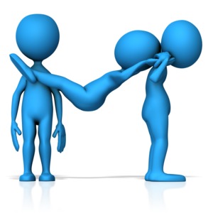Two stick figures carry a giant X.  This clip art image could display a concept of something that is false or wrong,  a warning, a mistake, or something that is prohibited.