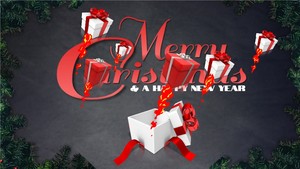 A stick figure is shown popping out of a present.